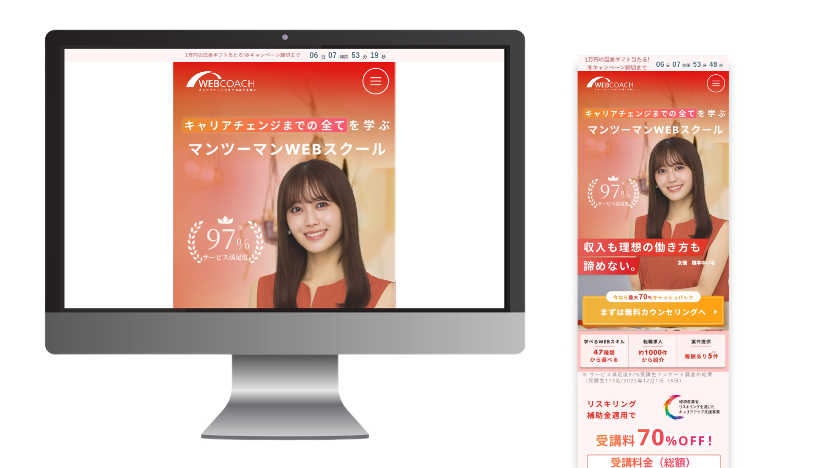 WEBCOACHは、キャリアチェンジまでの全てを学び理想の”収入と働き方”、どちらも叶えるためのマンツーマンWEBスクールです。