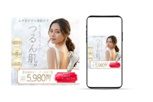 脱毛器広告バナー Atelier Union様 Photoshop/AI 美容バナーのトライアル案件にて、脱毛器のCTAバナーを作成いたしました。 生成AIにて脱毛器を使ったつるんとした肌を連想させる女性の画像を作成しメ […]